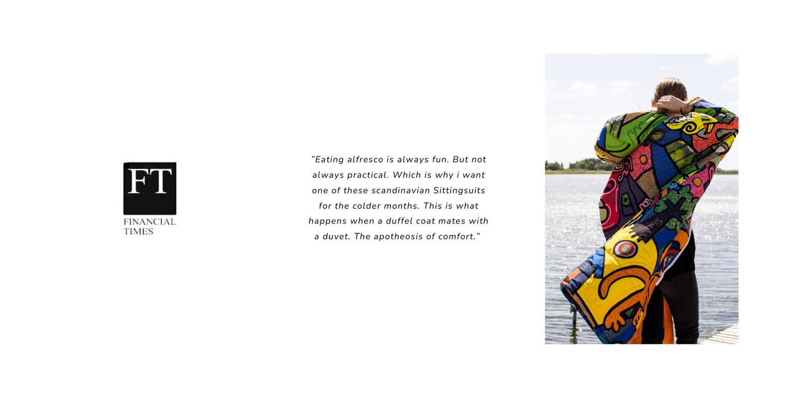 “The Sittingsuit is an ingenious, extra layer of protection from chill winds and rain that simply allows you to stay outside longer.”