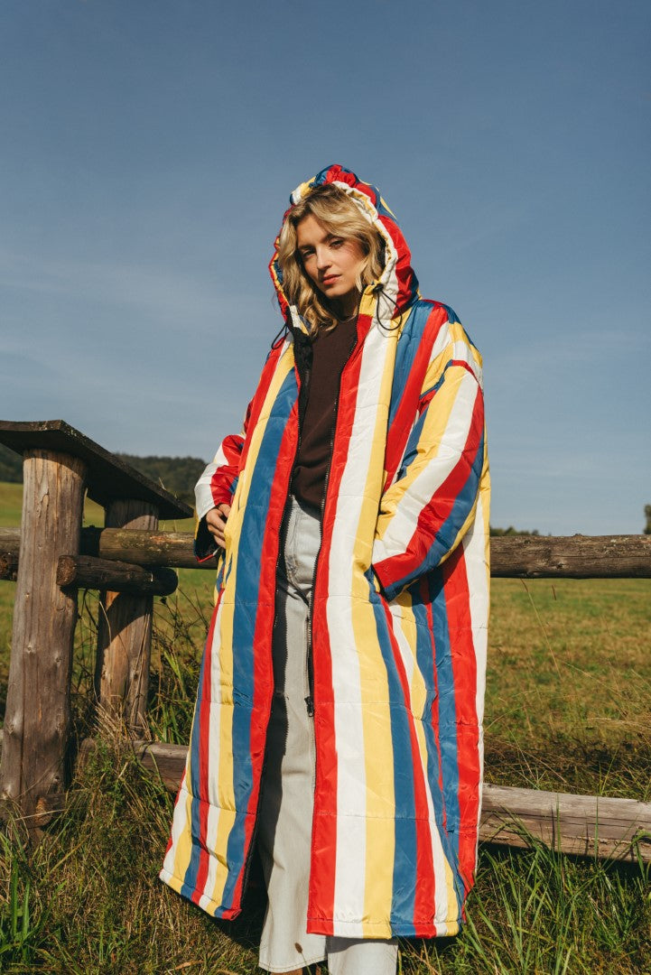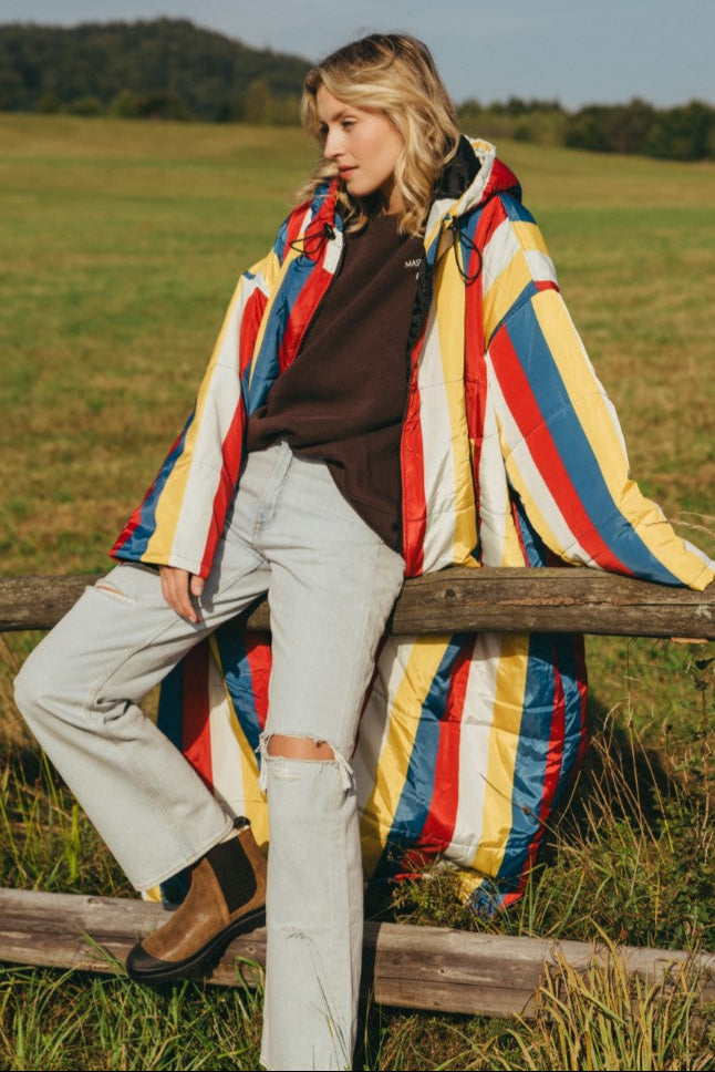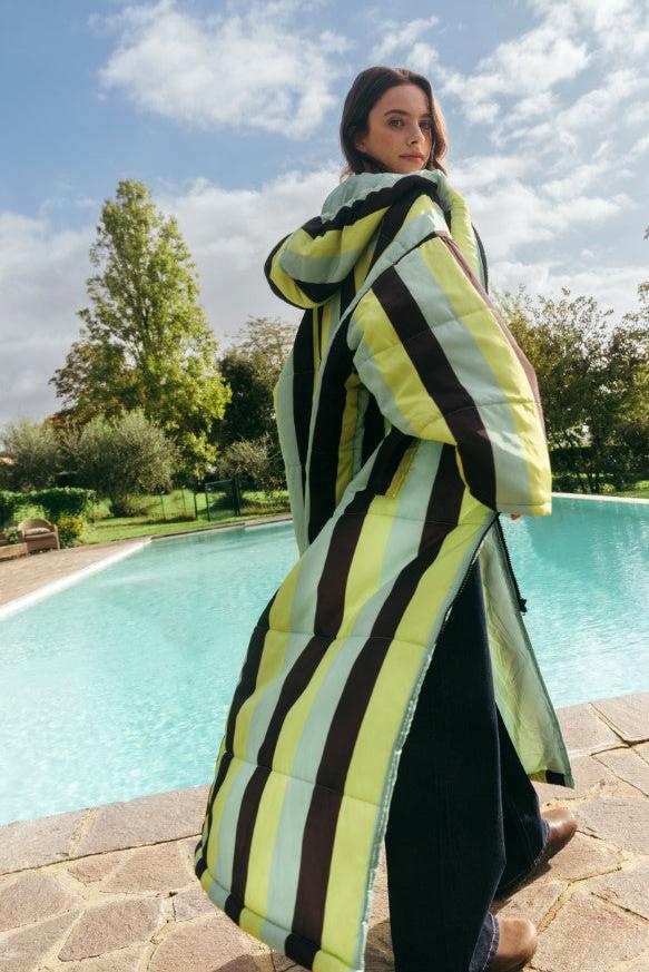 "Sittingsuits’ wearable blankets are a one-size-fits-all extra layer... With a series of artist collaborations resulting in bold stripes or colourful patterns, consider it a one-stop statement. You may never take it off."