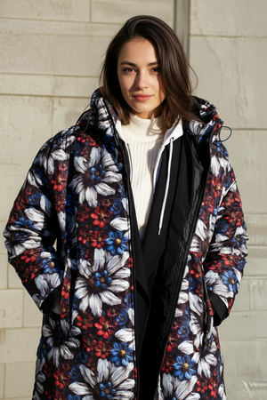 Der Saum der Kapuze ist mit einem Gummizug versehen, der sich nach Bedarf zuziehen lässt. Durch die überdimensionierte Kapuze lässt sich darunter problemlos ein Mantel tragen, der ebenfalls eine Kapuze hat. Also mit Doppelschutz durch Wind und Wetter!
