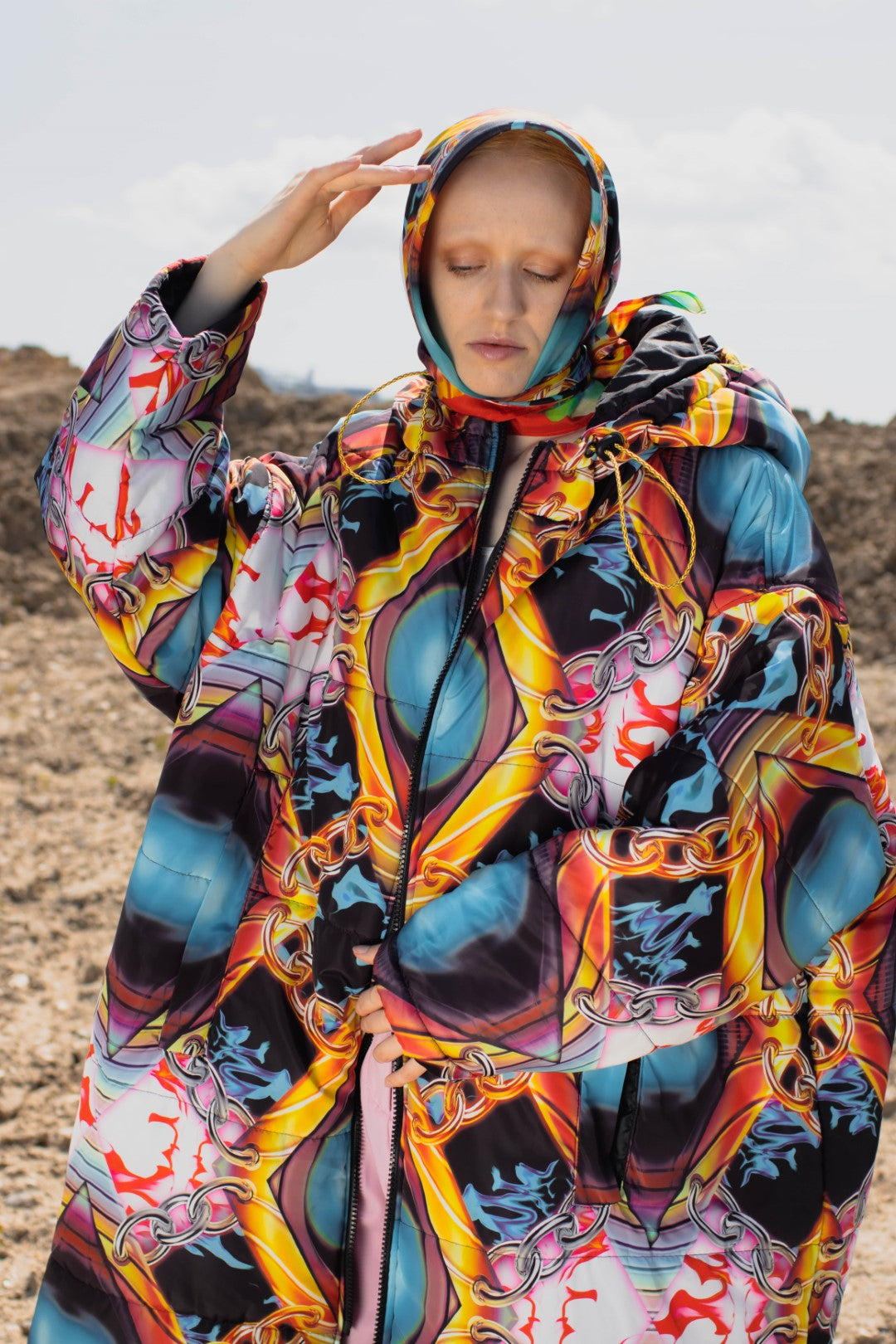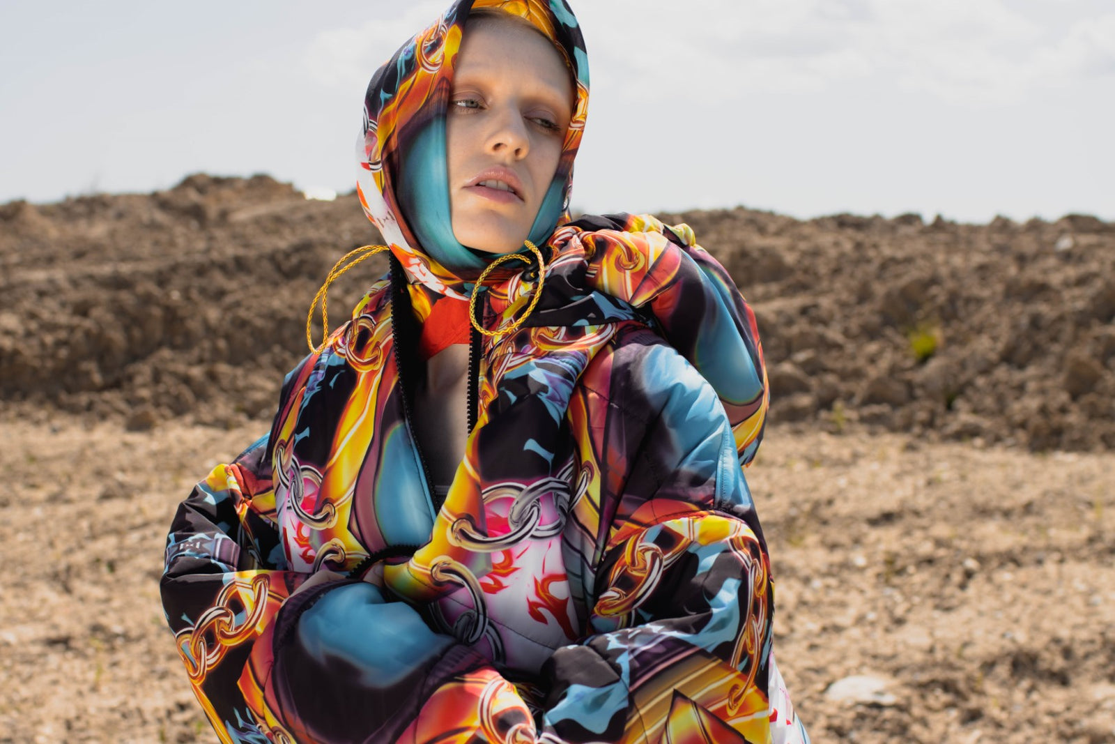 This limited-edition Sittingsuit features a custom print designed by Virgin Miri, inspired by the artist's unique "razorblade pop" sound. This collaboration goes beyond mere aesthetics, aiming to capture the essence of Virgin Miri's music in a tangible, wearable form.