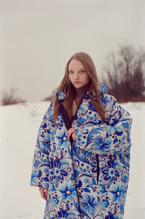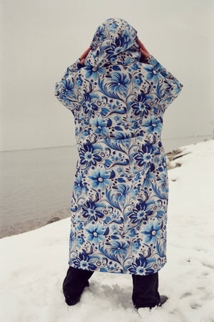 Der Saum der Kapuze ist mit einem Gummizug versehen, der sich nach Bedarf zuziehen lässt. Durch die überdimensionierte Kapuze lässt sich darunter problemlos ein Mantel tragen, der ebenfalls eine Kapuze hat. Also mit Doppelschutz durch Wind und Wetter!
