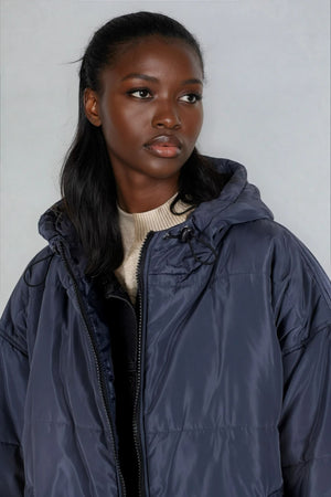 Der Saum der Kapuze ist mit einem Gummizug versehen, der sich nach Bedarf zuziehen lässt. Durch die überdimensionierte Kapuze lässt sich darunter problemlos ein Mantel tragen, der ebenfalls eine Kapuze hat. Also mit Doppelschutz durch Wind und Wetter!