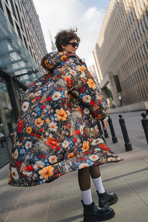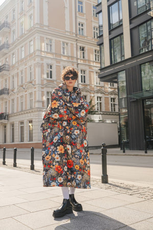 Der Saum der Kapuze ist mit einem Gummizug versehen, der sich nach Bedarf zuziehen lässt. Durch die überdimensionierte Kapuze lässt sich darunter problemlos ein Mantel tragen, der ebenfalls eine Kapuze hat. Also mit Doppelschutz durch Wind und Wetter!