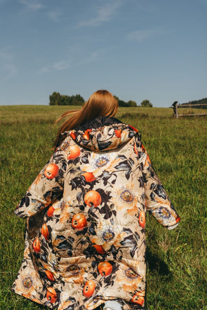 Der Saum der Kapuze ist mit einem Gummizug versehen, der sich nach Bedarf zuziehen lässt. Durch die überdimensionierte Kapuze lässt sich darunter problemlos ein Mantel tragen, der ebenfalls eine Kapuze hat. Also mit Doppelschutz durch Wind und Wetter!