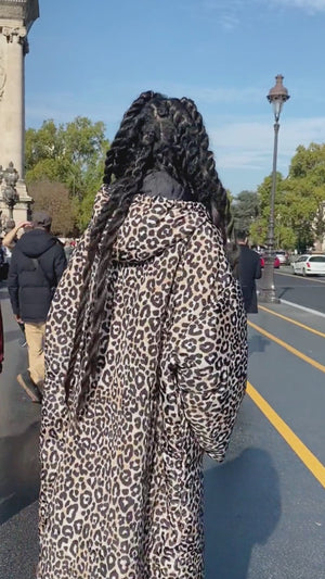 Der Saum der Kapuze ist mit einem Gummizug versehen, der sich nach Bedarf zuziehen lässt. Durch die überdimensionierte Kapuze lässt sich darunter problemlos ein Mantel tragen, der ebenfalls eine Kapuze hat. Also mit Doppelschutz durch Wind und Wetter!
